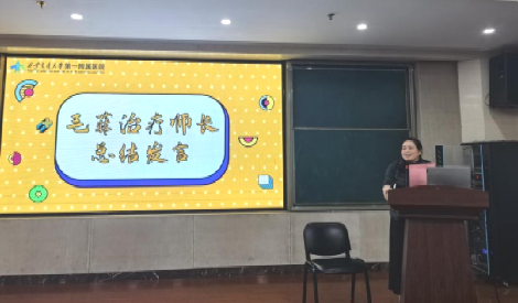 比赛结束后,由毛菲治疗师长对本次大赛进行总结点评,高度肯定了各参赛队伍的专业素养与竞技风采,认为大赛环节设计贴合临床需求,既检验了硬技能,又展现了软实力。此次实习生康复技能大赛的圆满举办,为广大实习生搭建了实践交流的重要平台,有效激发了大家钻研技术、提升技能的热情。同时,毛老师也提出了未来我们将持续深化技能人才培养模式,以赛事为纽带,推动实习教学质量与人才培养水平再上新台阶,为康复事业高质量发展注入源源不断的新生力量。最后,也感谢为本次大赛准备的工作人员,是她们的团结协作使得本次大赛圆满落幕。