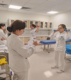 为检验训练成果,科室组织护士长、康复联络员及专科护士开展专项实操考核。考核现场,晨光透过玻璃窗落在病区走廊,考核人员依次完成八段锦连贯动作演示,评委组围绕动作规范性、呼吸配合度、患者指导适配性逐一打分点评,动作到位时的肯定、细节偏差时的纠正,都成为夯实技能的注脚。最终全员考核通过率达100%,陆港心内科的护理队伍自此底气更足、脚步更稳。