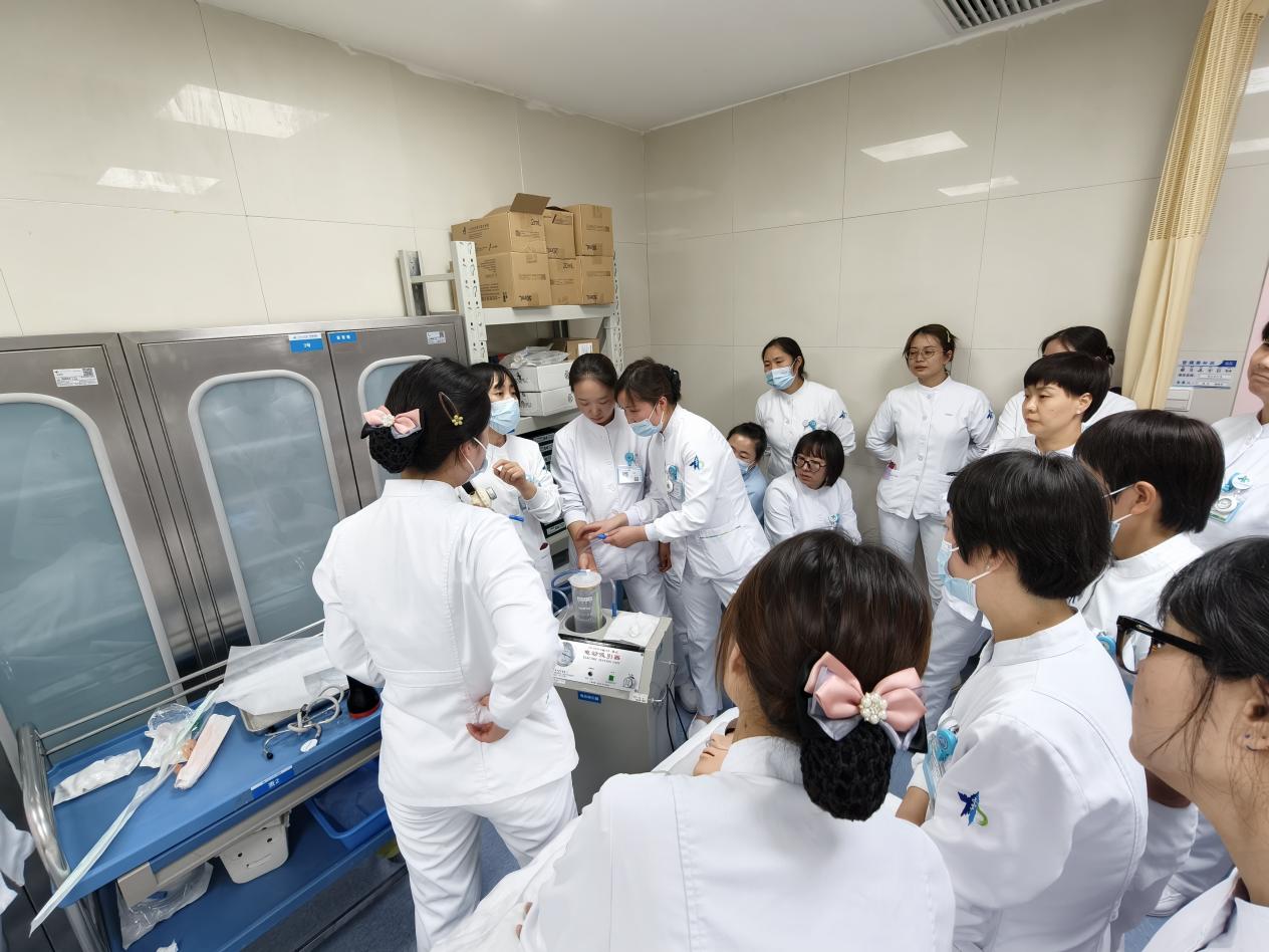 操作培训后,病区全体护士进行了四项操作的实操练习,过程中,李娟利总护士长、王婧护士长、王荣荣老师及时指出操作过程中的问题,护士老师们对操作相关问题展开了激烈的讨论。
