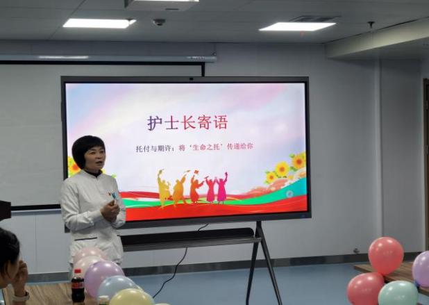 之后,高菊林护士长代表科室全体护士,首先对规培生们送上情真意切的寄语。她的语气温柔而坚定:“希望大家能够珍惜在这个高质量平台学习和工作的机会,学到血液净化专科技能,未来在医院的各个科室贡献属于自己的那份力量”。刘小敏副护士长回顾了每位规培生的闪光点,并寄语大家勤学苦练、精进技艺。在即将报到的新科室里迅速扎根适应。薛小红副护士长以一句“以梦为马,不负韶华”送上自己的祝福,希望大家能够用梦想编织未来的蓝图,用行动书写精彩的人生篇章。最后滑卉琳副护士长向大家发出了“常回家看看”的邀请,为欢送会送上了家人一般的祝福和期许。
