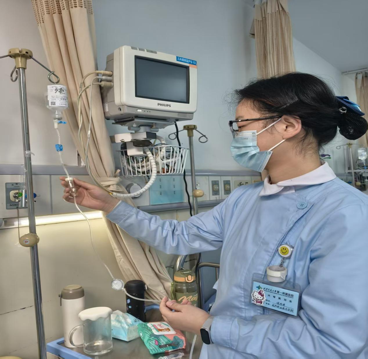 刚到儿科的第一天,我就真切体会到儿科护理和成人护理的天差地别。孩子们身体娇弱、表达能力有限,再加上对医院环境的恐惧,哪怕是测体重、量血压这样简单的操作,都可能引发一场“小风暴”。让我记忆最深刻的是一次协助带教老师为一名2岁的肺炎患儿做雾化治疗。孩子一看到面罩就拼命挣扎,哭得撕心裂肺,年轻的妈妈在一旁急得掉眼泪。老师没有强行操作,而是先关掉仪器,抱着孩子翻看他怀里的卡通绘本,嘴里还模仿着绘本里小动物的语气和孩子说话。等到孩子的情绪慢慢平复,老师才一边轻声安抚,一边慢慢将面罩贴近他的小脸,顺势开启了雾化开关。整个过程中,老师的眼神始终温柔地注视着孩子,手上的动作轻柔得像一阵风。事后老师告诉我:“儿科护理,三分靠技术,七分靠耐心。你得蹲下来,用孩子的视角看世界,才能真正靠近他们。”这句话,成了我整个实习期间的行动指南。