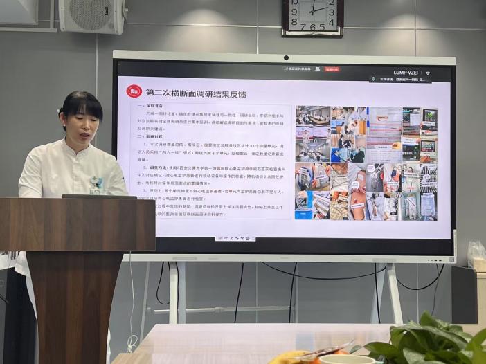 会议第一项,由刘盈盈护士长对心血管护理专业组开展的第二次全院“心电监护操作规范落实率”横断面调研结果进行详细解读。本次调研涵盖总院区、南院区、康复院区及陆港院区共83个单元,通过现场查看、人员访谈、结果追踪等方式,聚焦于设备管理、规范操作、准确记录、健康宣教等核心护理环节。刘护士长通过详实的数据、直观的图表,系统呈现了当前我院心电监护执行中的薄弱环节与重难点。同时也客观剖析了在护理流程标准化、质量监测精细化等方面存在的提升空间。她强调,调研结果是推动护理实践持续改进的“指南针”,要求各位联络员将数据带回科室,组织学习讨论,制定切实可行的优化措施。