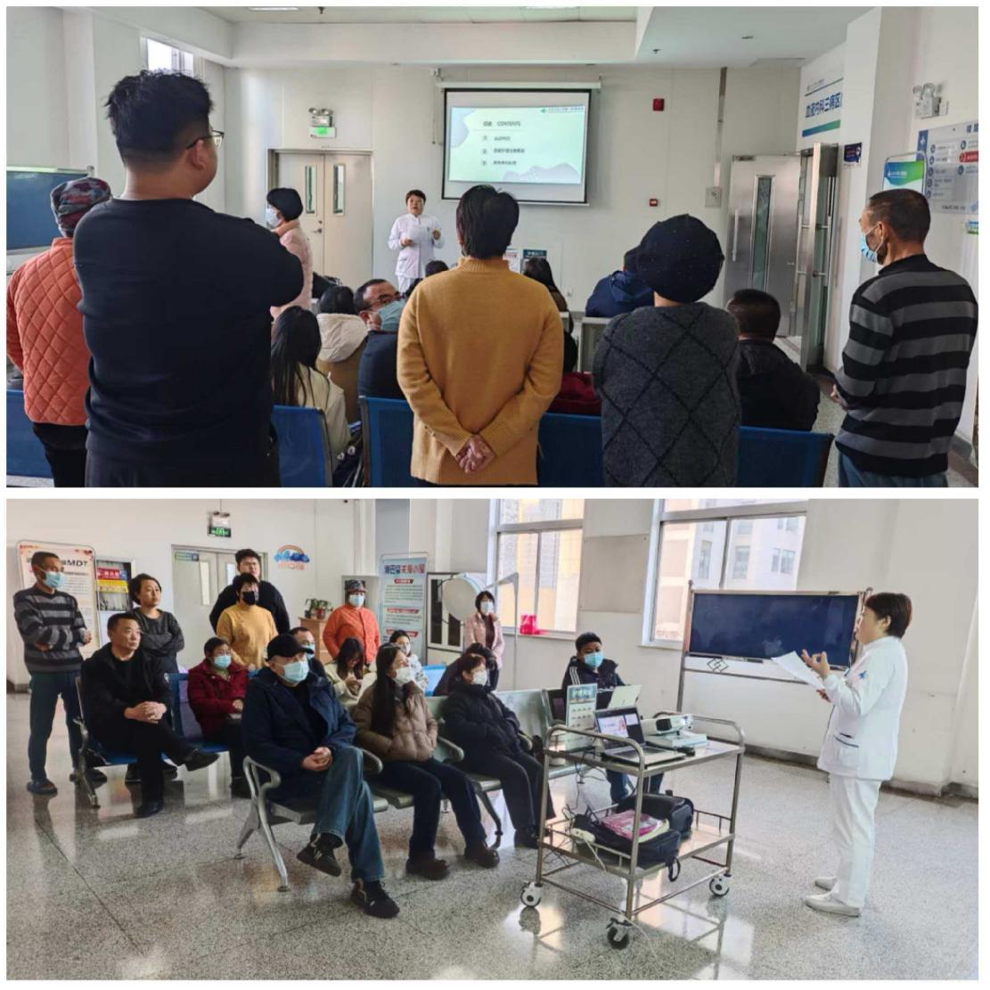 随后的健康教育宣讲环节,聚焦血液病患者常见的居家护理难点与需求,由科室资深护理骨干进行专业分享。王芳主管护师详细讲解了经外周静脉置入中心静脉导管(PICC)的日常观察、维护注意事项、沐浴保护方法以及出现异常情况(如渗血、脱出、感染迹象等)时的应急处理措施,减轻了携带管路患者的居家焦虑。针对化疗后易发生的口腔黏膜炎,戴攀凤护师系统介绍了有效的口腔清洁方法、适宜的漱口液选择、饮食调整策略以及黏膜损伤后的舒缓技巧,帮助患者减轻痛苦,维持基本营养摄入。刘田田护师结合营养学知识,为化疗期间患者提供了科学的饮食指导,包括如何保证足够热量与蛋白质摄入、选择易消化且卫生的食物、应对恶心呕吐等胃肠道反应的饮食调整方案,以及需要避免的食物种类等,助力患者改善营养状况,提升治疗耐受性。整个活动过程中,宣讲人语言通俗易懂,讲解细致入微,并设置了答疑互动环节。患者及家属们认真聆听,踊跃提问,就自身关心的问题与护理人员进行了深入交流,现场气氛融洽而热烈。护理团队对每一个问题都给予了耐心、专业的解答。