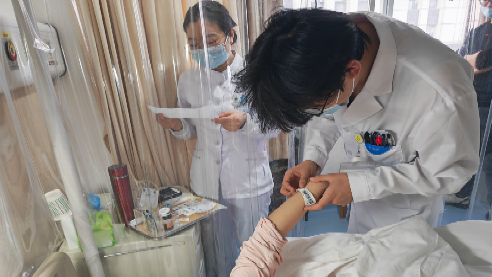 最令我动容的时刻,发生在出科前一周。当时,我协助科室开展病人住院满意度调查,并指导患者填写问卷。调查问卷中有一栏是“我认为最满意的护士名字是?”许爷爷竟然在答案一栏写下了我的名字。我作为科室轮转的护理实习生,本不应出现在这个答案里。但我觉得此刻这已无关紧要,这不仅仅是问卷上的一个简单答案,更是对我这段时间护理工作的高度肯定,也将对我未来的职业发展产生深远影响。从那之后,我突然领悟到:血液科的护理工作,绝不止于扎针、发药,更要用真诚叩开患者的心扉,用陪伴化解他们的病痛与不安。