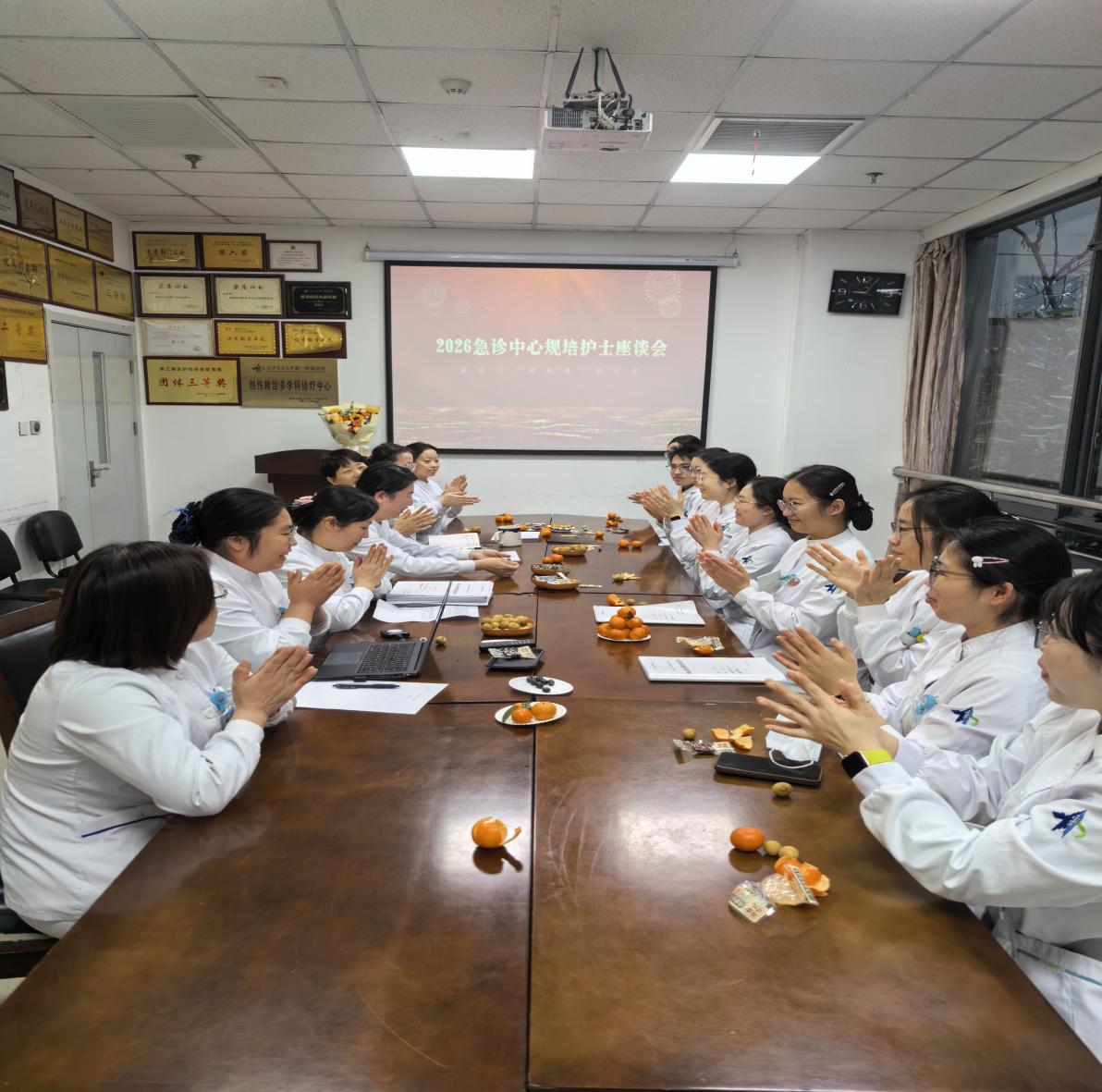 为助力规培护士快速完成角色转变,增强团队归属感与职业使命感,倾听护理新生力量的心声,急诊中心于1月16日在中心会议室组织召开了2026年规培护士座谈会。本次座谈会以“凝聚“新”力量,共筑“急”防线”为主题,门急诊辖区李敏玲总护士长、急诊科抢救区宋晔护士长、急诊科留观王霞护士长,EICU孙阿巧护士长,实习生总带教郝琳老师,规培生带教冯颖老师与全体2026年规培护士齐聚一堂,共话成长、共绘未来。