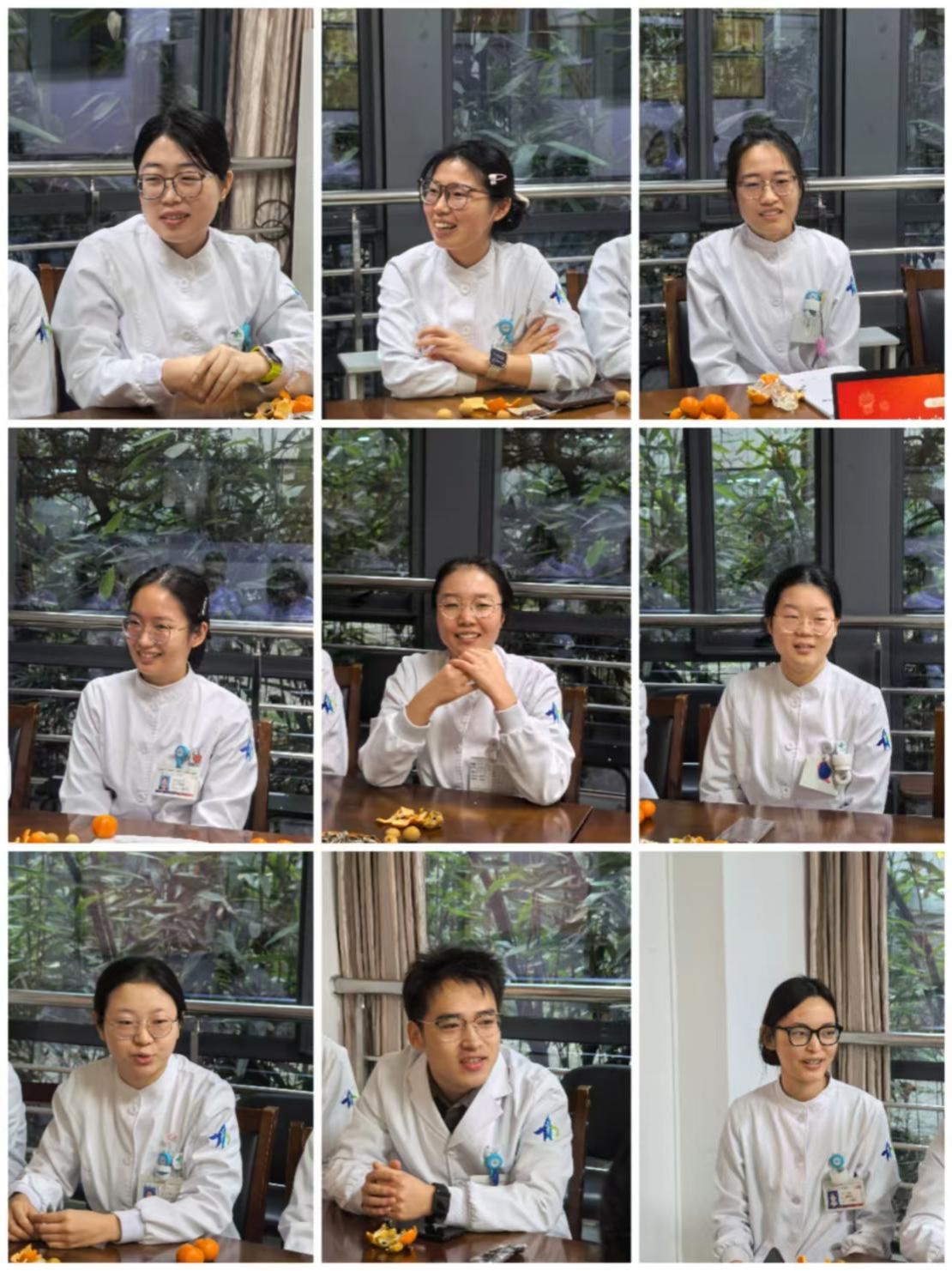 座谈会核心环节新护士们依次围绕 “自己的基本信息、轮转区域”、“对专业技能培训的期待” 以及 “自己的兴趣爱好特长” 等主题进行依次发言。规培生们敞开心扉,畅所欲言。大家既分享了初次参与抢救的震撼、夜班节奏的调整等真实经历,也提出了希望在高级生命支持、危重病人管路管理等方面得到更多系统培训的诉求,通过规培护士的发言,展现出这批规培护士积极的职业态度、清醒的自我认知和强烈的成长动力.他们的自我介绍不仅是一次个人展示,更是急诊护理新生代对专业价值认同的集体宣言.他们的活力与需求,是急诊中心未来优化带教体系、培养后备力量的重要参考.