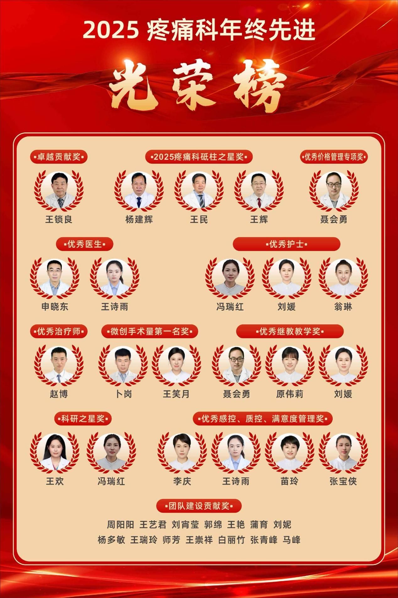 2026年1月21日下午,西安交通大学第一附属医院疼痛科召开2025年终总结暨先进表彰大会。疼痛科全体医、护、技以及进修、实习人员齐聚一堂,共同回顾过去一年科室在医疗服务、学科建设、科研教学以及团队管理等方面取得的成绩,同时表彰先进,凝心聚力,共绘新一年发展蓝图。