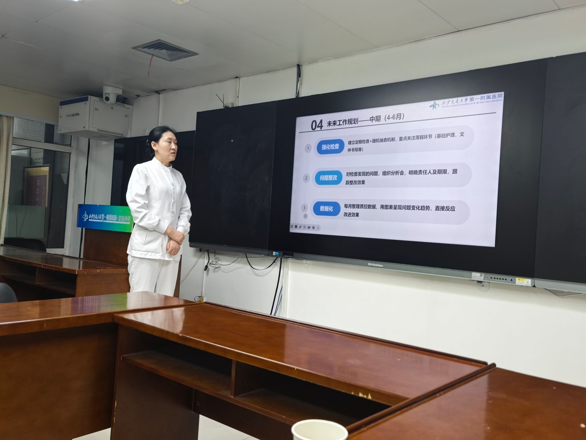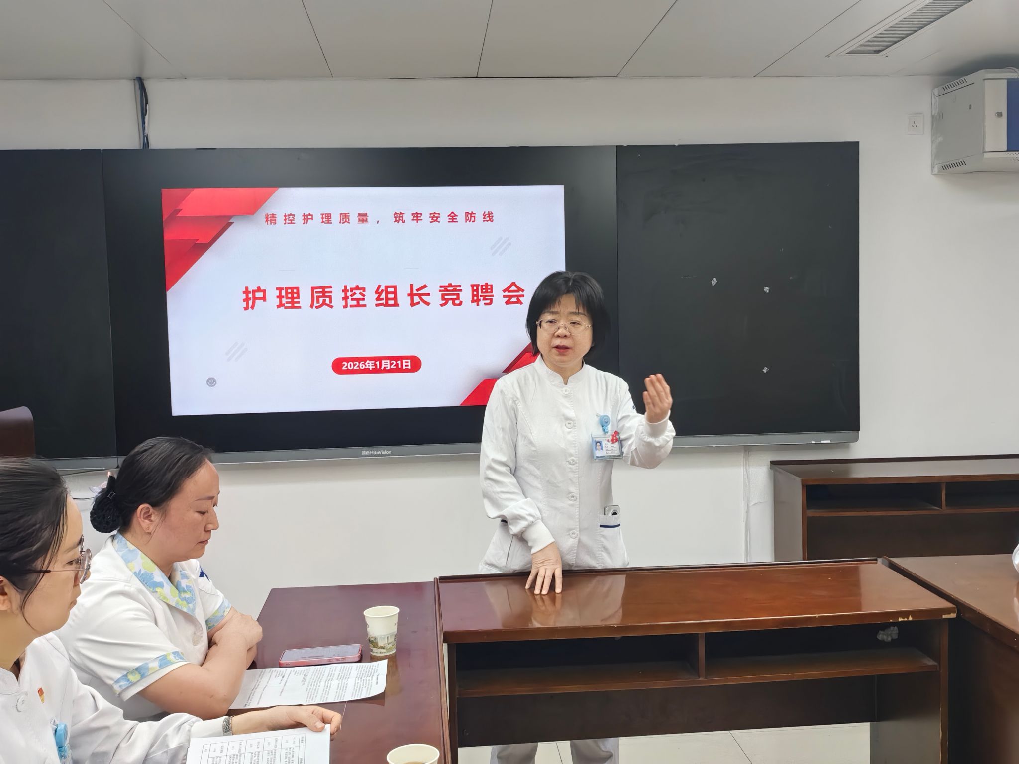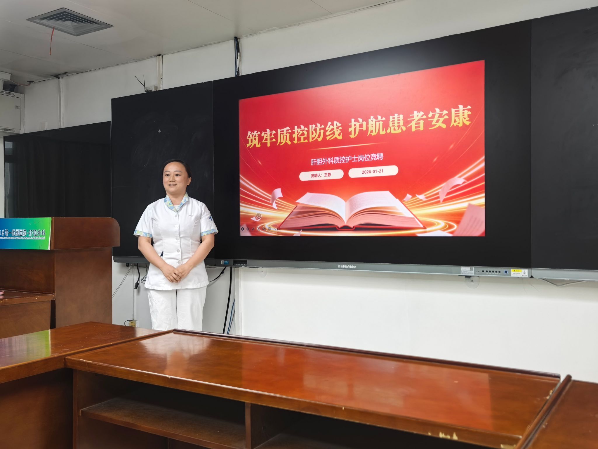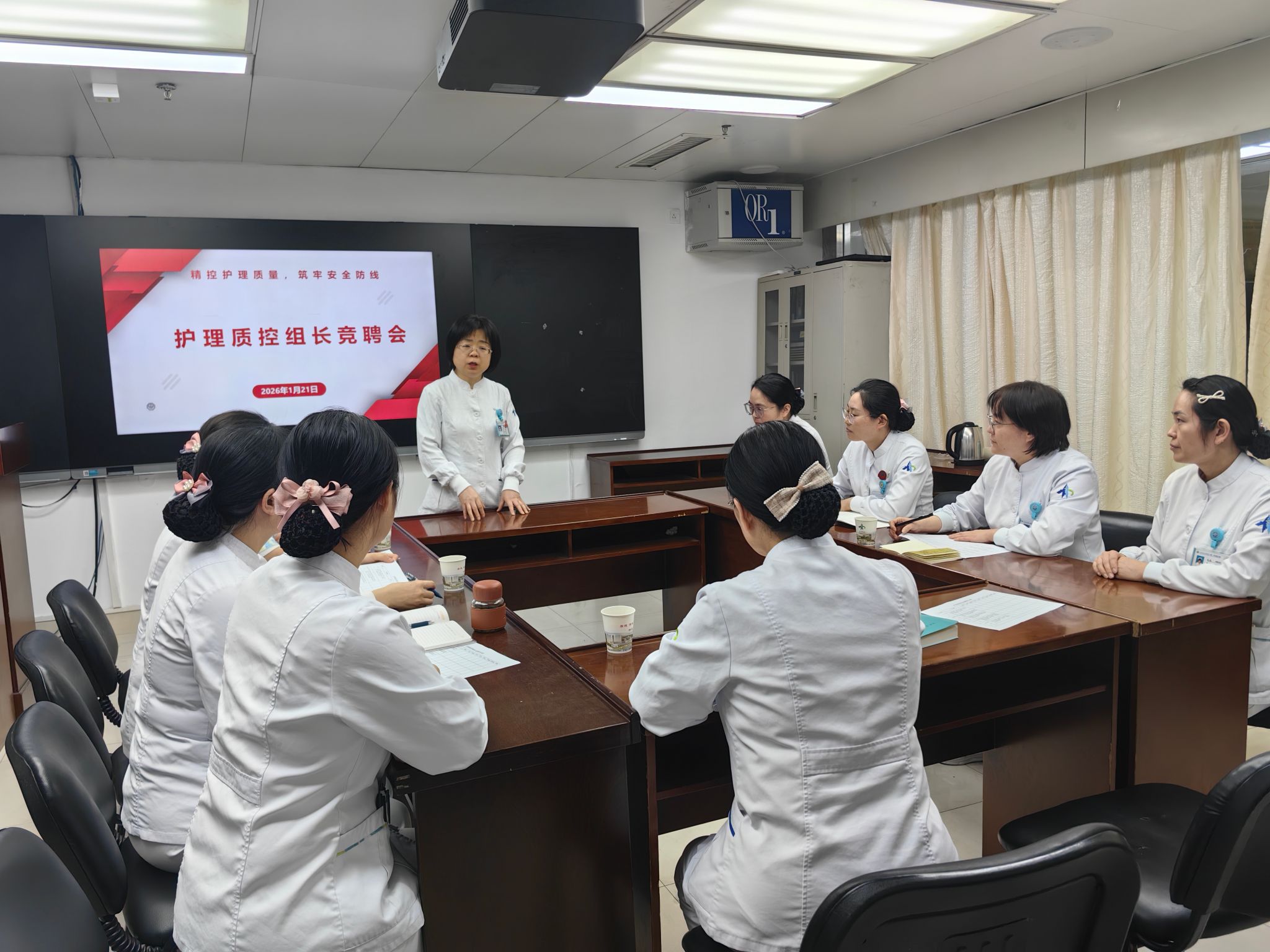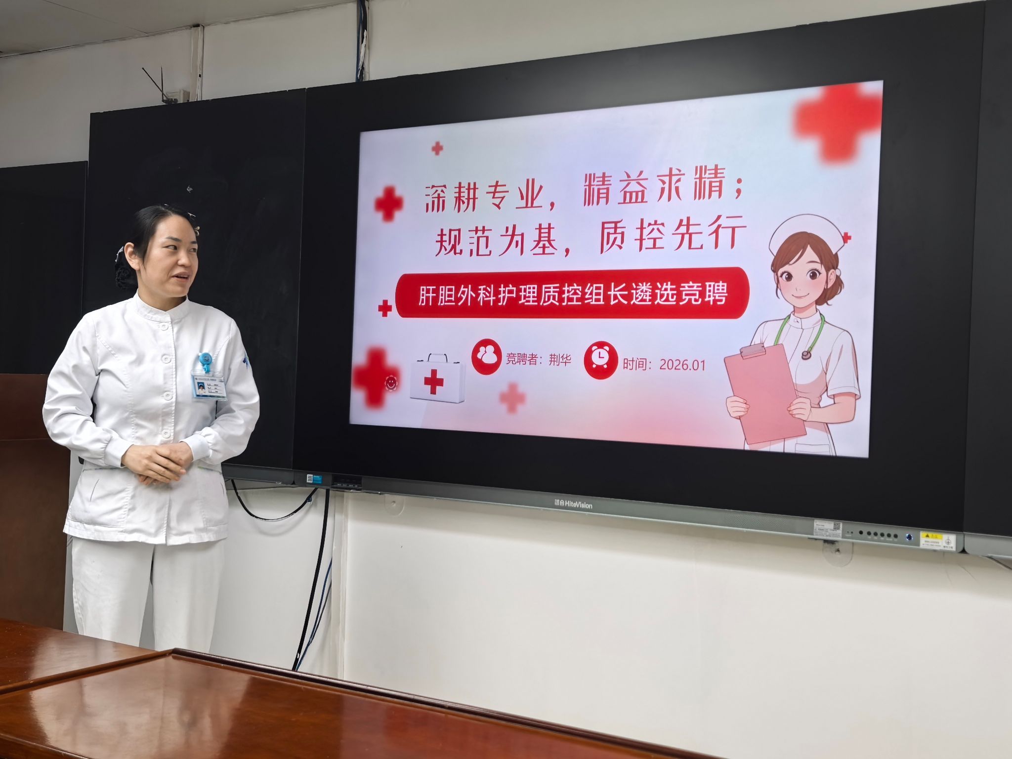 “护理质控的核心目的,是通过标准化、规范化的管理,最大限度降低护理风险,保障患者临床安全,同时推动护理服务向精细化、高品质方向发展。”肖奇贵总护士长在竞聘开场时强调:肝胆外科患者多涉及重大手术、复杂并发症及长期康复护理,术后感染防控、管道护理、疼痛管理、营养支持等每一个环节,都与患者安全直接相关,这对护理质控工作提出了更高的专科要求。此次竞聘正是基于这一核心目的,通过公开选拔的方式,让真正懂专科、重安全、善管理的护理人才走上质控岗位,以精准质控为患者安全“保驾护航”。