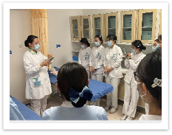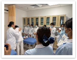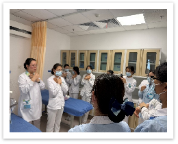 理论培训后,陈英护理师与汪凯旋护理师通过案例模拟进行全流程示范教学,以巩固理论培训效果。针对科室临床常见的成人、老年患者,以及孕妇、肥胖、1 岁以下婴幼儿、昏迷患者等特殊人群,逐一演示新版海姆立克的标准操作,同时对施救过程中可能出现紧急情况的应急处置进行模拟演练,如患者突发意识丧失的应急处置要点。之后护理人员分组进行实操演练,主讲人现场指导,逐一规范细节,确保每位护士都能熟练掌握、规范操作。