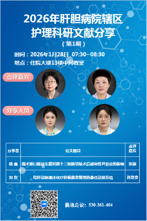 为营造浓厚的学术氛围,提升护理人员科研素养与循证实践能力,2026年1月28日晨7:30,肝胆病院辖区2026年度第一期护理科研文献分享会于住院部13楼教室举行。为方便更多同事参与,本次分享会同步开启了线上腾讯会议,实现了线上线下联动学习,扩大了学术活动的覆盖面和影响力。