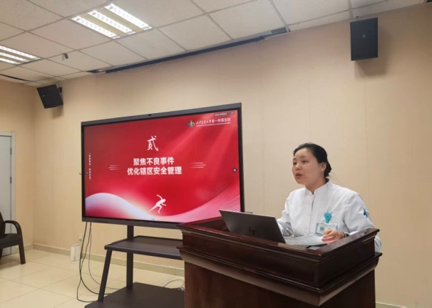 在第一板块中,八位护士长依次进行发言。汇报不仅涵盖常规工作安排,更聚焦于多项关键专项改善计划,内容具体,方向明确。