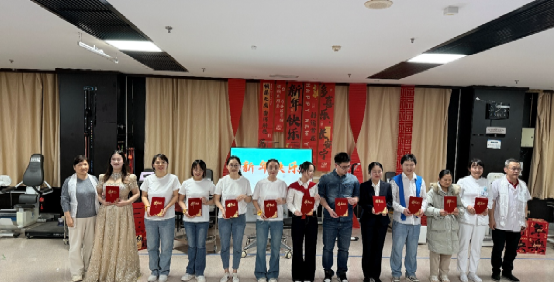 文艺展演过程中,多轮幸运抽奖环节穿插其中,幸运奖、三等奖、二等奖依次揭晓,惊喜不断,现场氛围持续高涨,大家在欢声笑语中收获满满幸福。最令人动容的环节当属优秀职工表彰,为表彰先进、树立榜样,科室对22位在2025年工作中表现突出的优秀职工进行隆重表彰。在庄重大气的颁奖音乐中,颁奖嘉宾上台宣读颁奖词并为优秀职工颁奖,袁子文、何娟、彭宇等22位优秀职工,用行动诠释责任,用实绩书写担当,他们是科室发展的中坚力量,更是全体同仁学习的榜样。
