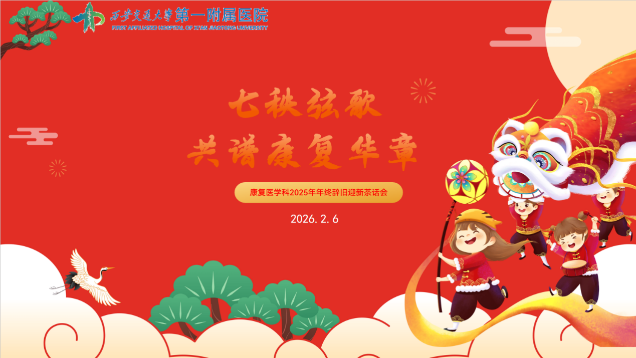 律回春渐,新元肇启。2月6日下午,在院总工会的支持下,由康复医学科部门工会主办的西安交通大学第一附属医院康复医学科2025年年终辞旧迎新茶话会在科室三楼训练大厅举行,本次总结会以“七秩弦歌,共谱康复华章”为主题,融合包团圆饺子、工作汇报、文艺展演、优秀表彰、领导慰问、抽奖互动等多个环节,全面回顾2025年科室发展成果,表彰先进典型,凝聚奋进力量,同时献礼医院七十华诞。科室全体医护人员、治疗师及行政工作人员齐聚一堂,共话发展,喜迎新春。