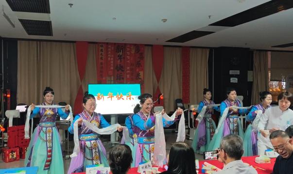 马琪、陈俊、姜霖霖等7位同事带来的藏族舞蹈《吉祥安康》,以优美的舞姿、纯净的祝福,将雪域高原的美好祈愿带到现场,并向尊敬的嘉宾们献上哈达,“吉祥安康”不仅是新春的祝福,更是康复人的祈愿,深深打动了在场每一个人。
