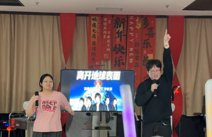 文浩天、李昕姿带来的流行歌曲对唱《离开地球表面》,以高亢的歌声、酣畅的演绎,为现场带来一场视听盛宴。