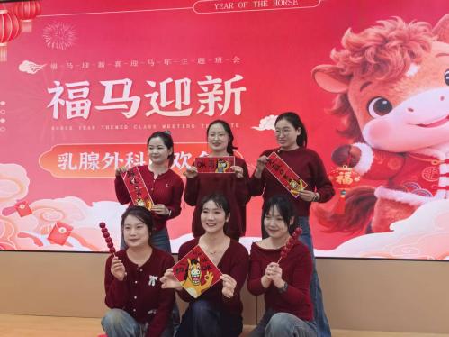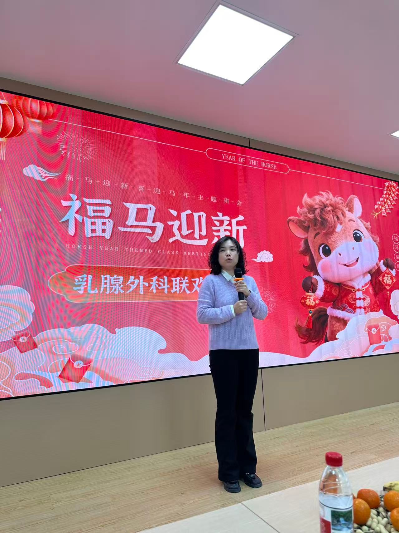 骏马踏歌辞旧岁,瑞气盈门迎新春。2月9日晚,乳腺外科三楼会议室内暖意融融,在院工会的大力支持下,乳腺外科2026年“马跃新春”迎新春文艺汇演如期启幕。科室全体医护人员欢聚一堂,共忆往昔耕耘路,共话未来新蓝图,在传承医者初心、凝聚团队力量中,共度一段温馨而有意义的新春时光。