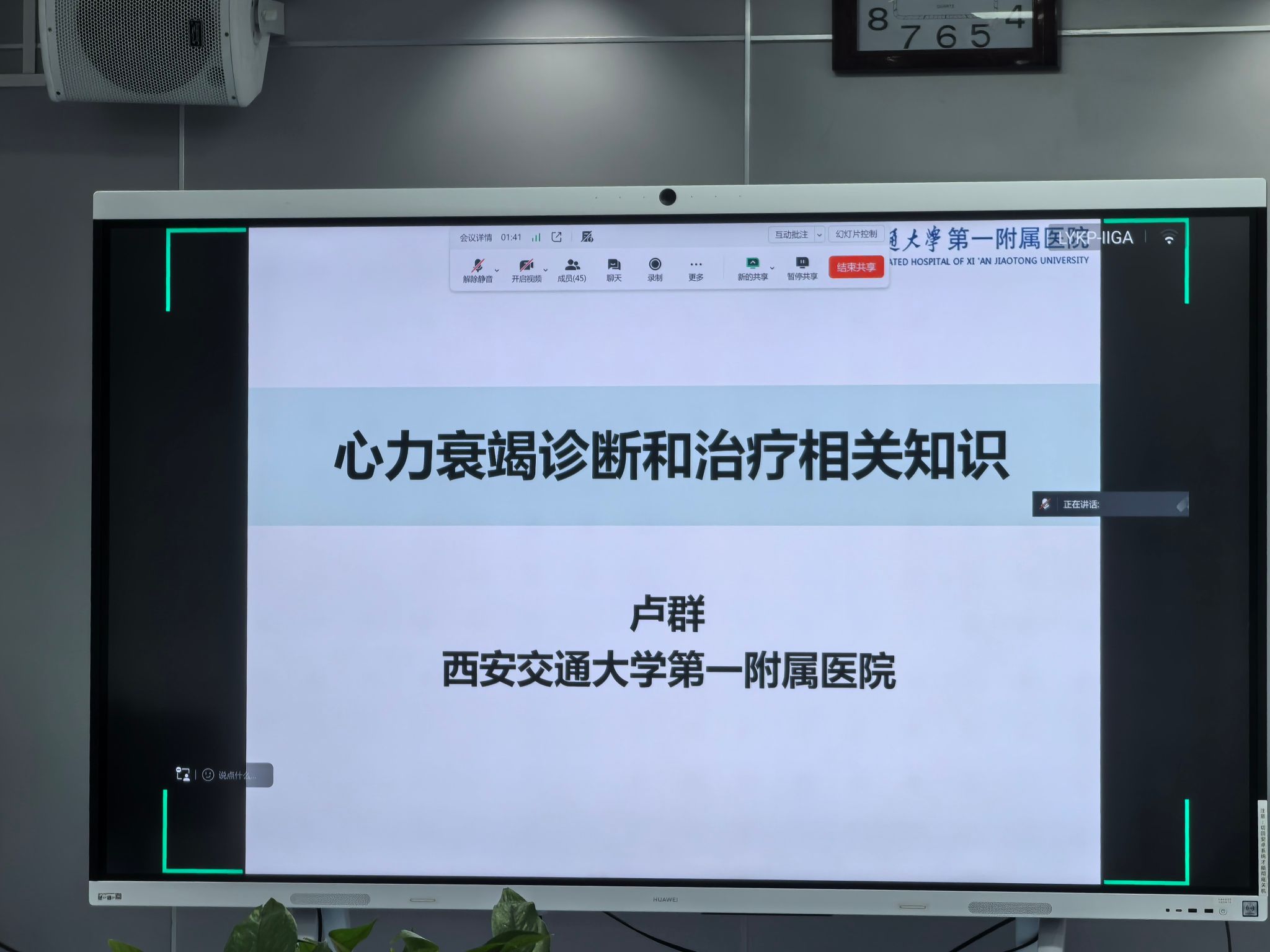 培训中,卢群医生结合最新临床指南与科室典型病例,围绕心力衰竭的病因病理、临床表现、分级评估、诊断标准、药物治疗、容量管理、并发症防控等核心内容进行系统讲解。重点解读了利钠肽检测、超声心动图在心衰精准诊断中的应用,以及心衰“新四联”规范化用药方案、急性心衰应急处理等关键知识,内容紧贴临床、实用性强。