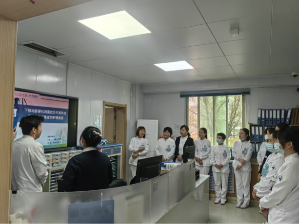 为进一步规范专科护理流程,提升护理人员对复杂疑难病例的临床护理能力,夯实护理服务质量,2026年3月6日晨会后周围血管科开展了以《下肢动脉硬化闭塞症合并高铁血红蛋白血症患者的护理查房》为主题的专科学习活动。此次查房由李璐主管护理师和郭文辉护士主持,科室护理人员积极参与,共同探讨交流。
