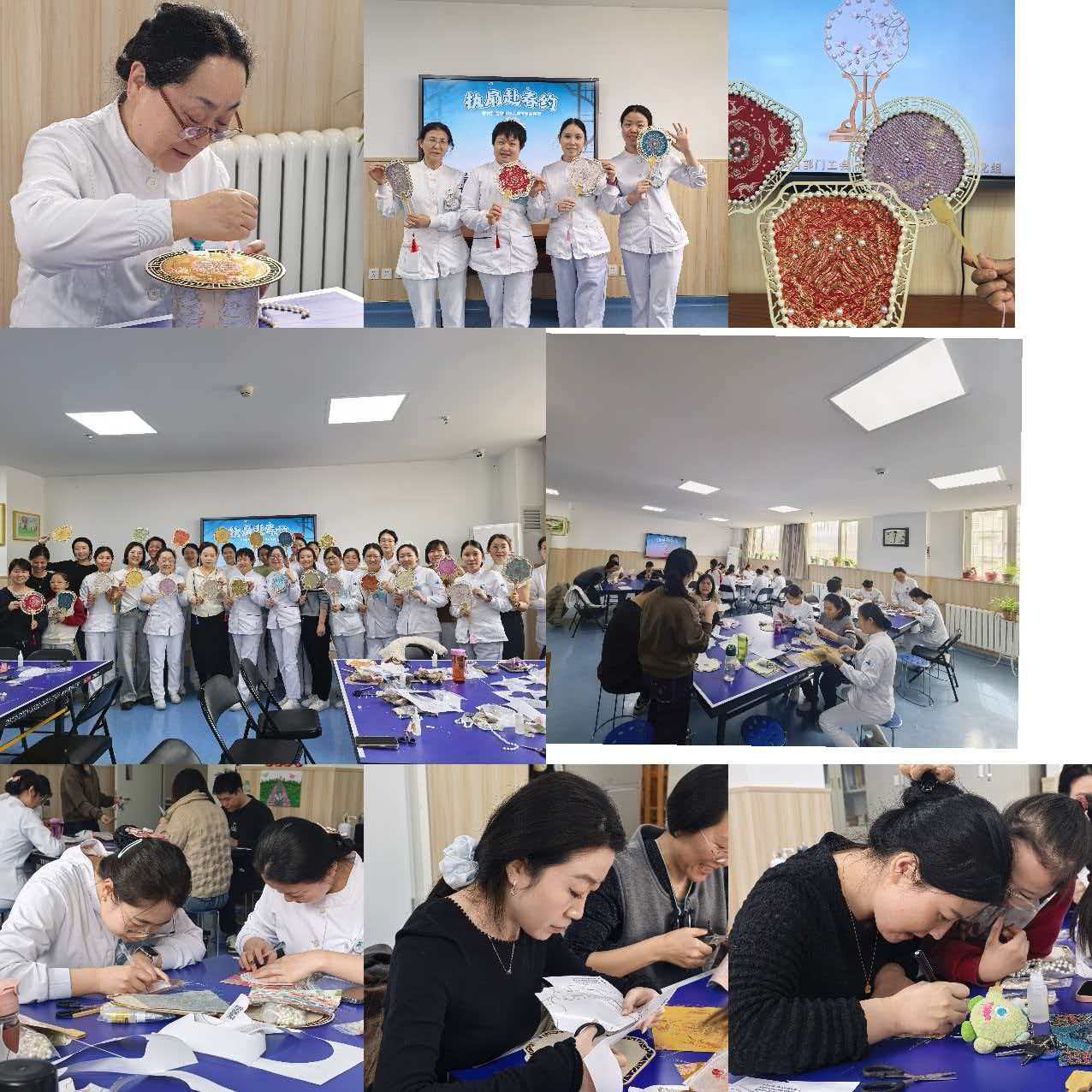 为喜迎三八国际妇女节,丰富科室文化生活,舒缓医护人员工作压力,3月6日中午,精神心理卫生科部门工会联合科室信息文化组,在三楼康复室成功举办“执扇赴春约”女神节团扇制作活动。科室医护人员欢聚一堂,沉浸式体验传统工艺之美,共度温馨雅致的节日时光。