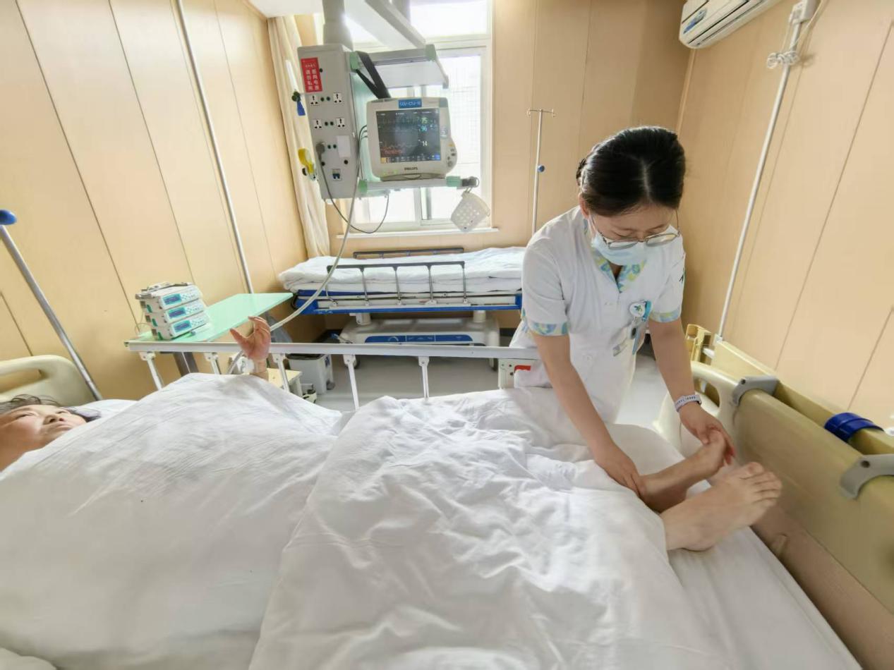 对于昏迷、躁动或自主活动能力缺失的患者,责任护士定时为患者进行被动勾足背运动,轻柔活动双侧踝关节,配合下肢按摩,动作规范轻柔,避免牵拉与损伤。同时密切观察患者肢体反应、皮肤颜色及温度变化,确保运动安全有效。