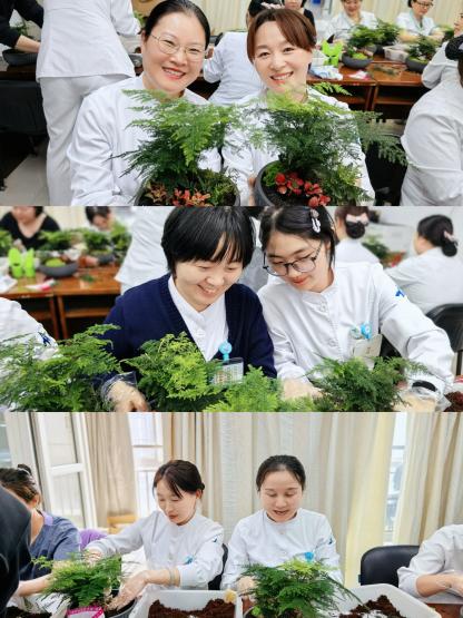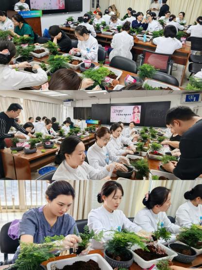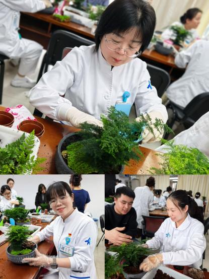 活动现场氛围温馨而热烈,大家相互交流、彼此欣赏,在泥土的芬芳与绿植的清新中,暂时忘却了临床工作的疲惫,享受着亲手创作的乐趣。一盆盆错落有致、绿意盎然的盆栽作品,不仅是大家巧思与匠心的结晶,更承载着对生活的热爱与对未来的期许。