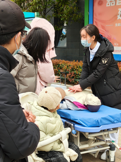 2026年3月19日上午十点,人来人往的医院大门口,一个躺在床上的“人”吸引住了许多患者及家属的目光和驻足。这不是意外,而是一场特殊的宣讲。王小悦站在临时设立的“急救地摊”前,面对着一张张或焦虑、或好奇的面孔,开启了一场爱与守护的对话。
