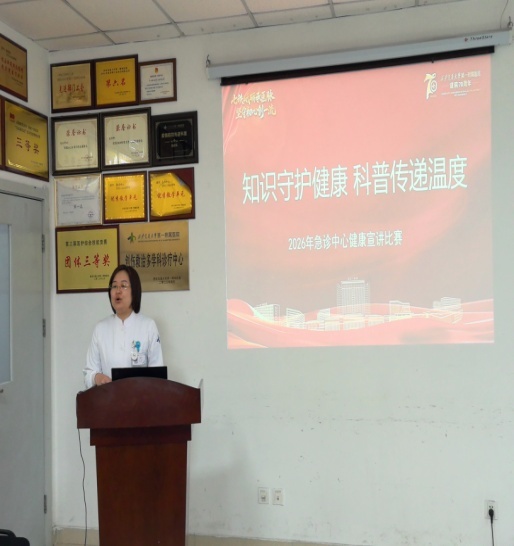 在建院70周年华诞即将来临之际,为深入贯彻健康中国战略,积极推进健康知识普及行动,全面提升全民健康素养,着力培养优秀护理科普人才,护理部将举办 2026 年度第九届健康知识科普大赛暨科普海报征集大赛。3月24日下午,春光格外灿烂,急诊中心会议室举行主题为 “知识守护健康 科普传递温度”的健康科普比赛,此次健康宣讲比赛由李敏玲总护长、孙阿巧护士长的大力支持和组织,特邀宋晔护长、张晓玲护长、王霞护长、专家李会玲、优秀科普能手何洁雅、赵亚锋老师为评委,共有11组32名参赛人员,每位选手限时5分钟,随着孙阿巧护长的殷切致辞,比赛拉开了帷幕,选手们选题新颖,准备充足,在这短短的5分钟里,讲出了各自的精彩。精美绝伦的PPT展示,富有激情的讲述使整个比赛过程高潮迭起。