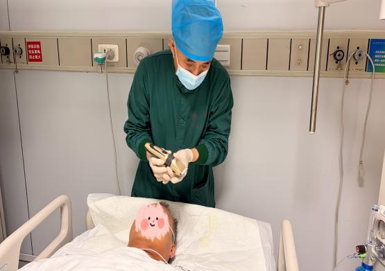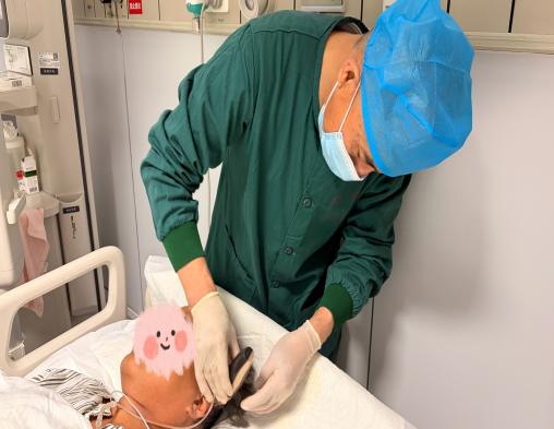 操作过程中,护士们全程守护在旁,密切观察患者的生命体征,轻声安抚患者情绪,耐心调整患者体位,保障操作安全舒适;护工师傅手法轻柔、细致娴熟,小心翼翼地为患者修剪头发、清理碎发,每一个动作都饱含着对患者的关爱。从工具消毒到操作实施,从体位护理到碎发清理,全程规范细致、贴心周到,原本烦琐的护理操作,在医护人员的默契配合下变得温暖而有序。