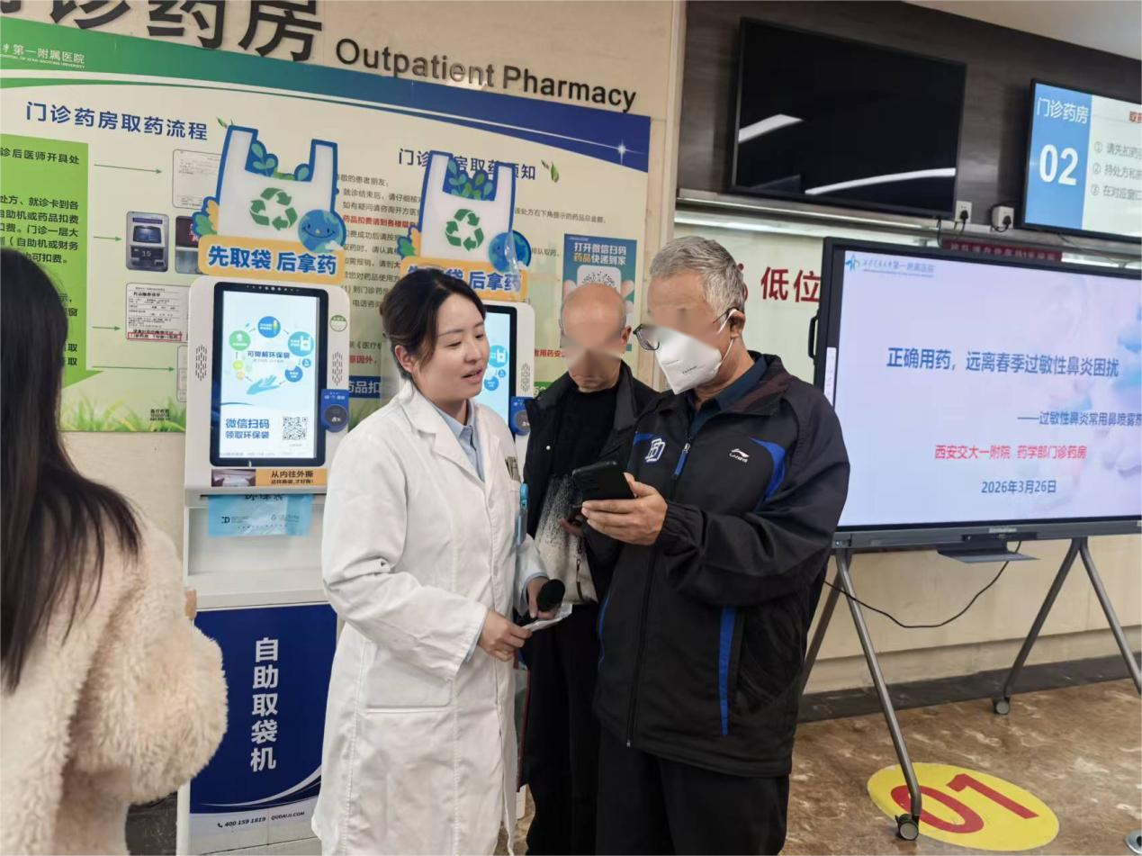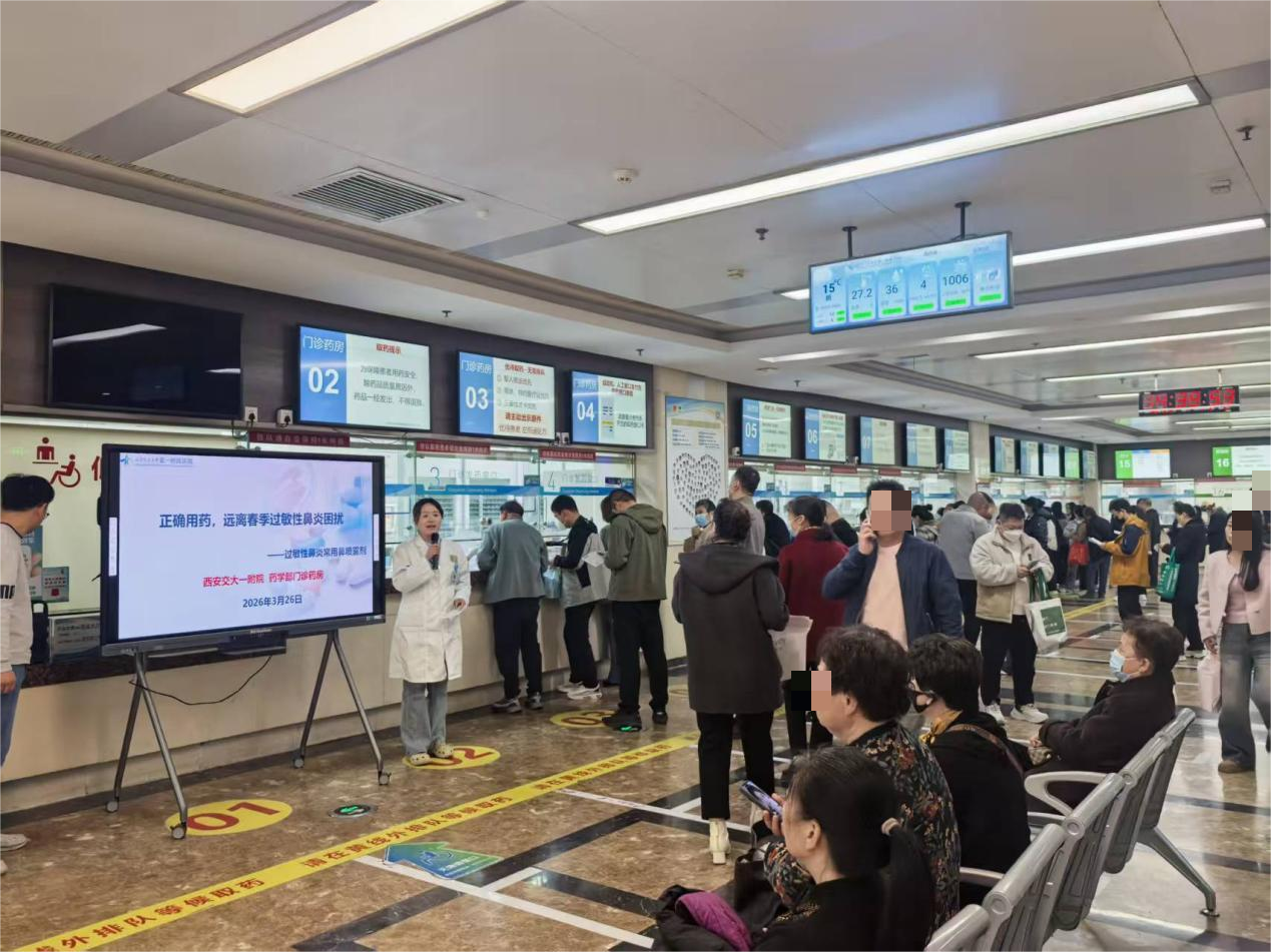 春回大地,万物复苏,花粉、柳絮等过敏原随之增多,过敏性鼻炎进入高发时段,广大患者受鼻塞、鼻痒、打喷嚏、流清涕等症状困扰。临床中发现,患者普遍存在鼻喷雾剂使用不规范、用药认知有误区等问题,严重影响用药效果。为保障患者用药安全有效,普及过敏性鼻炎药物使用知识,2026年3月26日,门诊调剂组药师团队于门诊取药大厅举办鼻喷雾剂使用专题药师小讲堂,以专业药学服务守护群众健康,活动取得预期成效。