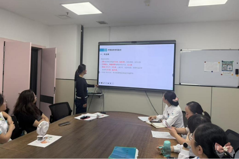 随后,张胶琼护士对3月份护理质量检查情况进行了系统分析。她围绕分级护理、专项指标、给药输血流程、病房管理等重点项目,展示了体温图、护理记录单、护理计划单、健康教育单等文书的质控数据。相较2月份,整体质控结果呈现大幅度提升。同时针对新出现的隐患问题,均落实到具体环节和个人,并提出了切实可行的整改措施。此外,会议还重点强调了4月份将持续关注护理文件书写质量。