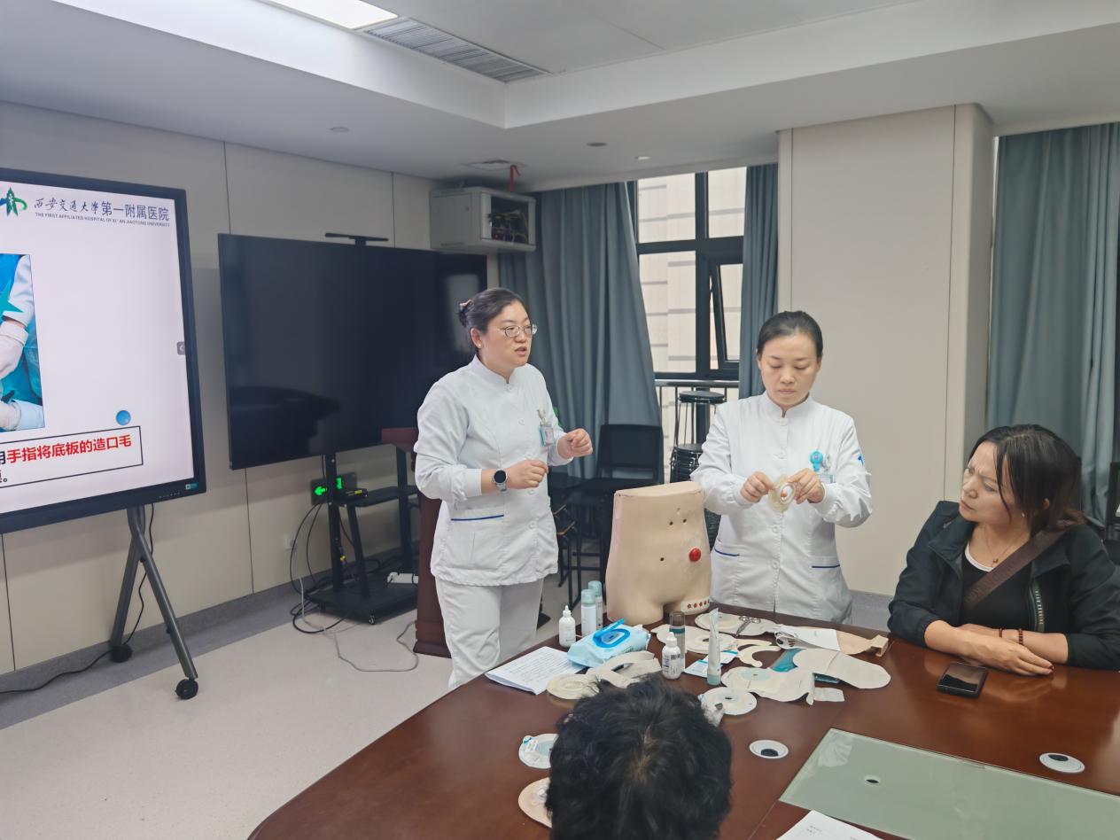 为增强患者及家属的护理技能,活动特别设置了造口护理工作坊。在王惠君和陈萌副护士长的指导下,大家现场学习造口用品的选择与更换、皮肤护理技巧以及日常生活中的注意事项。面对面指导、手把手教学,让抽象的护理知识变得直观易懂,也帮助患者和家属解决了许多在日常护理中遇到的实际问题。现场热烈温馨,参与者纷纷表示,此类活动内容实用、收获颇丰,不仅缓解了照护焦虑,也增强了居家护理的信心。