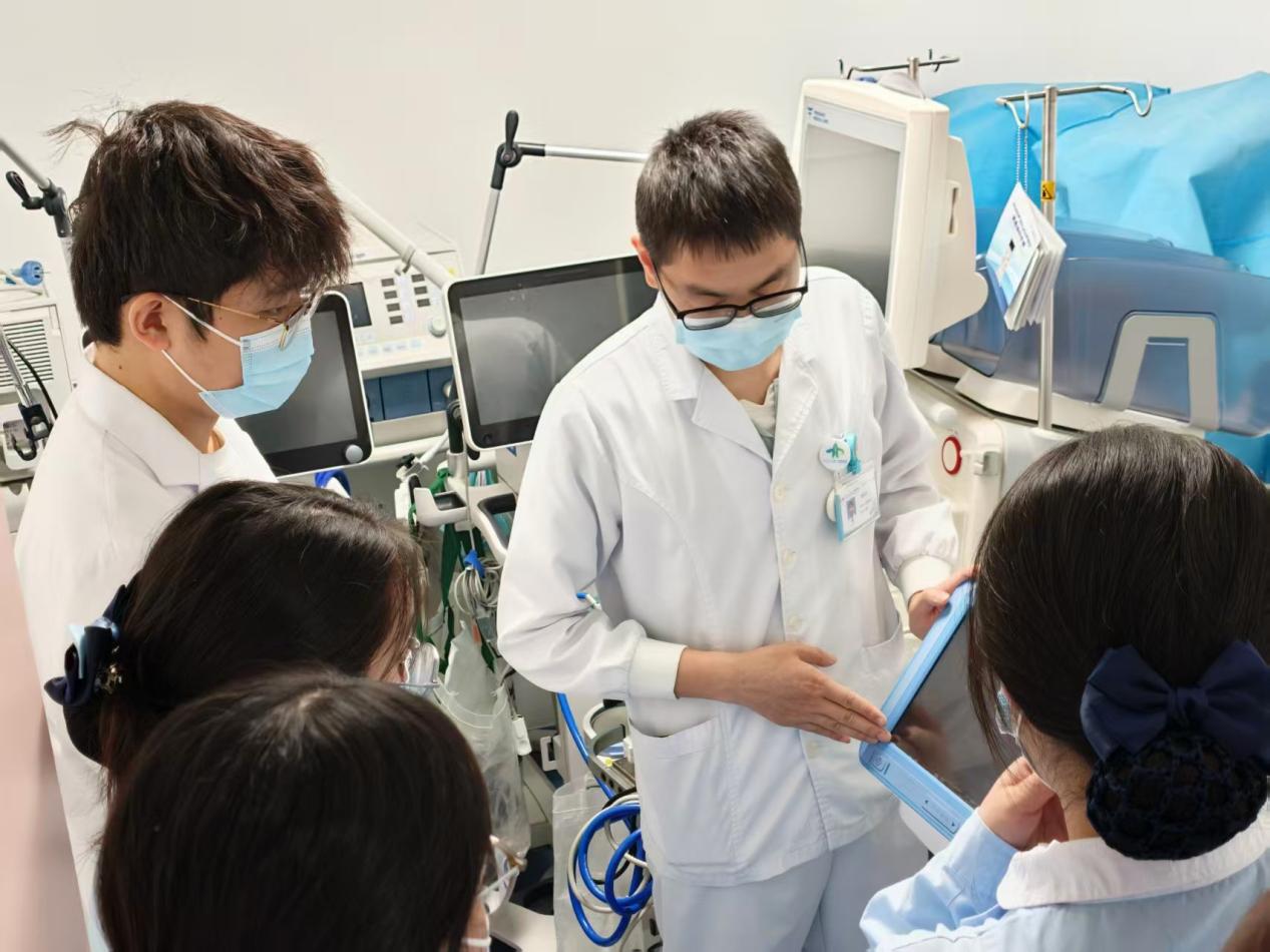 在实操示范环节,周军文重点讲解了IABP护理的核心要点:从穿刺部位的无菌护理、敷料更换流程,到足背动脉搏动监测、下肢皮肤温度与感觉评估的具体方法;从ECG导联选择与固定技巧,到抗凝药物的精准管理;从患者体位控制(床头抬高不超过30°,避免屈膝屈髋),到球囊破裂、下肢缺血等并发症的预警与应急处理。他一边操作一边叮嘱:“IABP患者的护理要做到‘眼勤、手勤、心细’,每小时评估末梢循环,密切关注反搏压力波形,任何异常都可能影响患者预后。”教学过程中,周军文鼓励学员主动提问,针对“如何判断反搏有效”“抗凝治疗的出血风险防控”等问题,结合临床案例逐一解答,强调“循环改善、尿量增多、血压稳定、正性肌力药物减量”是反搏有效的关键观察指征。进修老师李医生表示:“床旁教学让抽象的护理规范变得具体可感,周老师的讲解既专业又实用,解决了我们临床操作中的诸多困惑。”实习同学也纷纷表示,通过近距离观察与实操指导,对IABP护理的重点难点有了更清晰的认知。