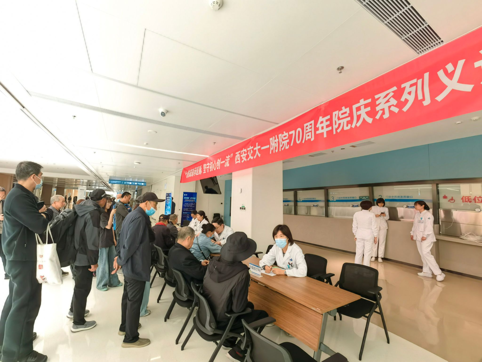 2026年4月20日上午,为深入传播科学的肿瘤防治理念,普及肿瘤防治健康知识,贯彻落实癌症三级预防原则,营造全社会共同抗癌防癌的良好氛围,陆港院区消化内科、呼吸内科、腹部外科、胸外科、肿瘤放疗科五个学科在陆港院区门诊一楼大厅开展了以"早防早筛早治,同心携手抗癌"为主题的肿瘤防治宣传周义诊及宣教活动。
