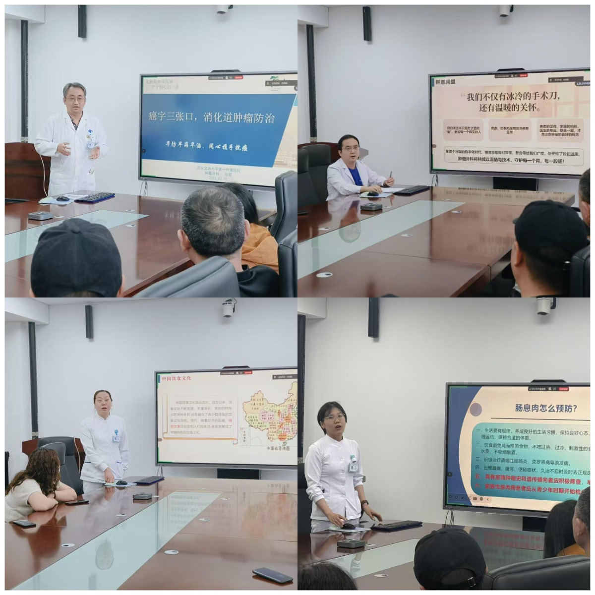 4月15日一病区率先以“科普先行”开展宣讲,张昊副主任医师以《癌字三张口——消化道肿瘤防治》为题,从“癌”字的结构切入,生动讲解食管癌、胃癌、结直肠癌等消化道常见肿瘤的高危因素与预防策略,强调“管住嘴、勤筛查”是降低发病风险核心。孙团鹤住院总医师带来《从精准到整合——消化道肿瘤治疗新进展》,系统介绍了靶向治疗、免疫治疗及多学科协作(MDT)模式下消化道肿瘤诊疗最新突破,帮助患者及家属了解“不只是手术化疗”的更多治疗选择。康小云副护士长围绕《滋养生命,爱护健康——营养与健康》,从肿瘤患者常见营养不良问题出发,分享合理膳食搭配、营养补充时机及家庭营养支持的实用技巧,重申“营养是抗肿瘤治疗的重要基石”。王雅丽主管护师则以《守护肠道,为健康护航——您需要了解的肠镜知识》为题,详细讲解了肠镜检查的适应人群、清肠准备要点、无痛肠镜流程及常见误区,鼓励适龄人群和高危人群“不再怕肠镜、不再躲筛查”。