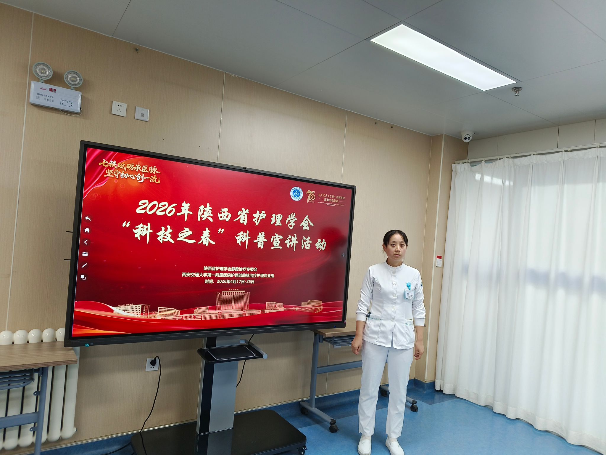 为积极响应2026年陕西省护理学会“科技之春”科普宣讲活动号召,提升患者及家属对PICC的居家护理能力,2026年4月23日肿瘤内科成功举办了一场以“共护‘生命线’”为主题的PICC居家护理专题宣教活动。