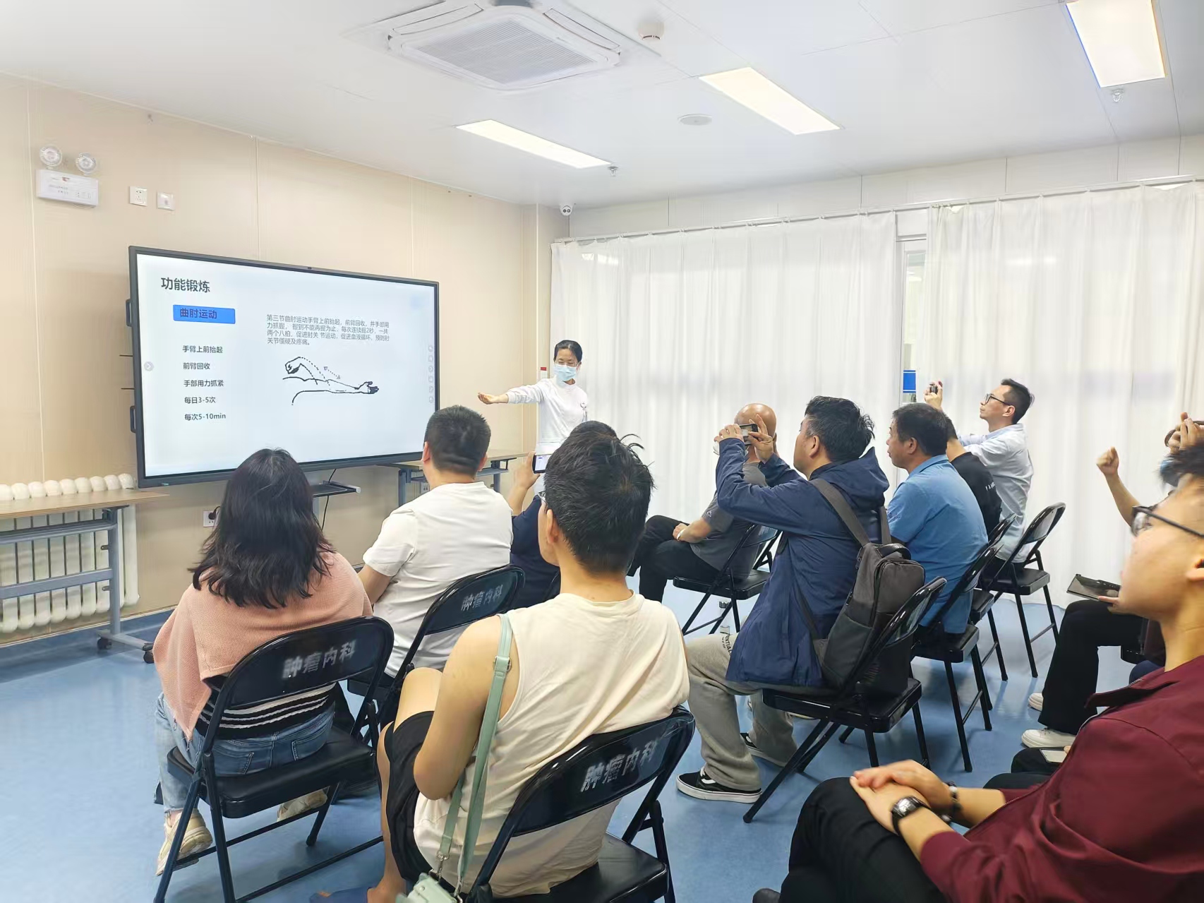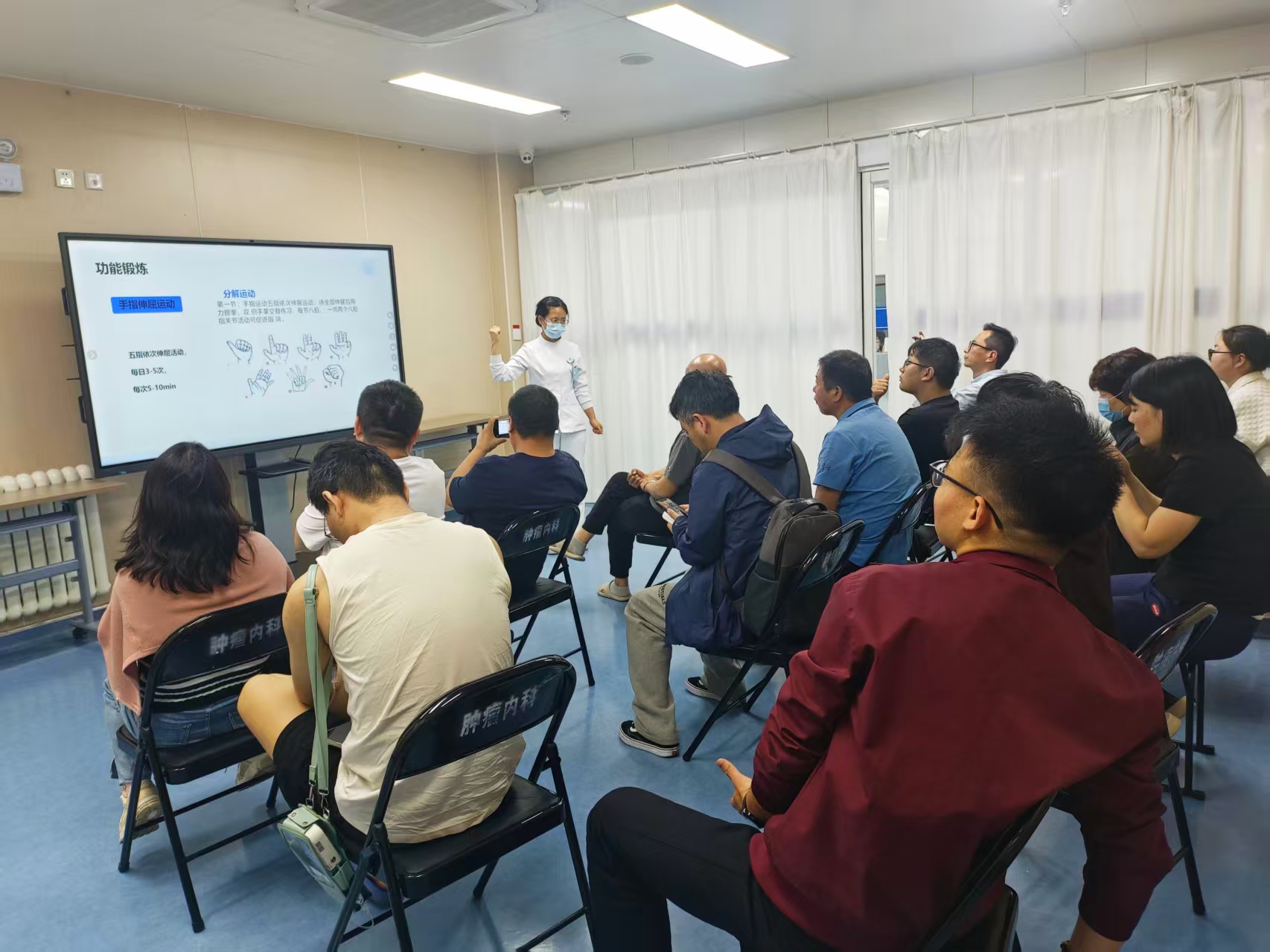 本次活动由肿瘤内科静疗专科护士曹锐主管护理师和静疗联络员吕莹主讲,为带管患者及家属送上系统、实用的居家护理知识,吸引了患者及家属共30余人积极参与。
