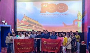 神经外科党支部为庆祝建党100周年,弘扬爱国主义精神,增强支部爱党爱国热情和团队凝聚力,7月1日19时,在博纳影院组织党员、团员及群众代表共45人观看爱国影片«1921»。