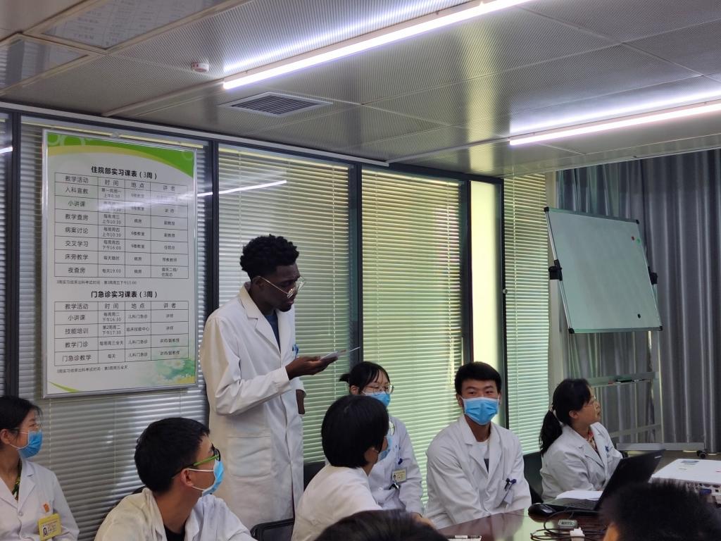 根据教学查房的基本流程,一位实习医师首先对病史进行询问,围绕着所选典型病例过敏性紫癜的皮疹展开,接下来另一位实习医师进行了重点的体格检查,包括测血压、心肺腹等重要脏器的查体。问诊及查体结束后其他实习医师进行了补充。该过程中,吴红艳副主任医师在床旁给予适当的提示与引导,对实习医师查体中存在的手法及顺序问题给予纠正。病史采集与体格检查结束后,教师与实习医师回到住院部六楼教室进行进一步的讨论。实习医师对病史、查体、辅助检查、诊断等逐个环节展开讨论,每位实习医师都能运用所学理论知识,结合临床实际,积极参与,讨论气氛热烈。接下来,一名留学生对病例进行了总结。最后,吴红艳副主任医师对患儿的情况进行了分析总结,并对实习医师的表现进行了小结,指出了实习医师存在的问题,对实习医师的人文关怀和团队意识提出表扬,同时将课程思政融入教学查房过程中,教导实习医师在医疗过程中注意保护患儿的隐私、尊重患儿及家属,启发大家要在临床工作中不断发现问题,解决问题,真正提高临床能力,整个教学查房活动历时约一小时。所有实习医师对此次教学查房进行了评分。