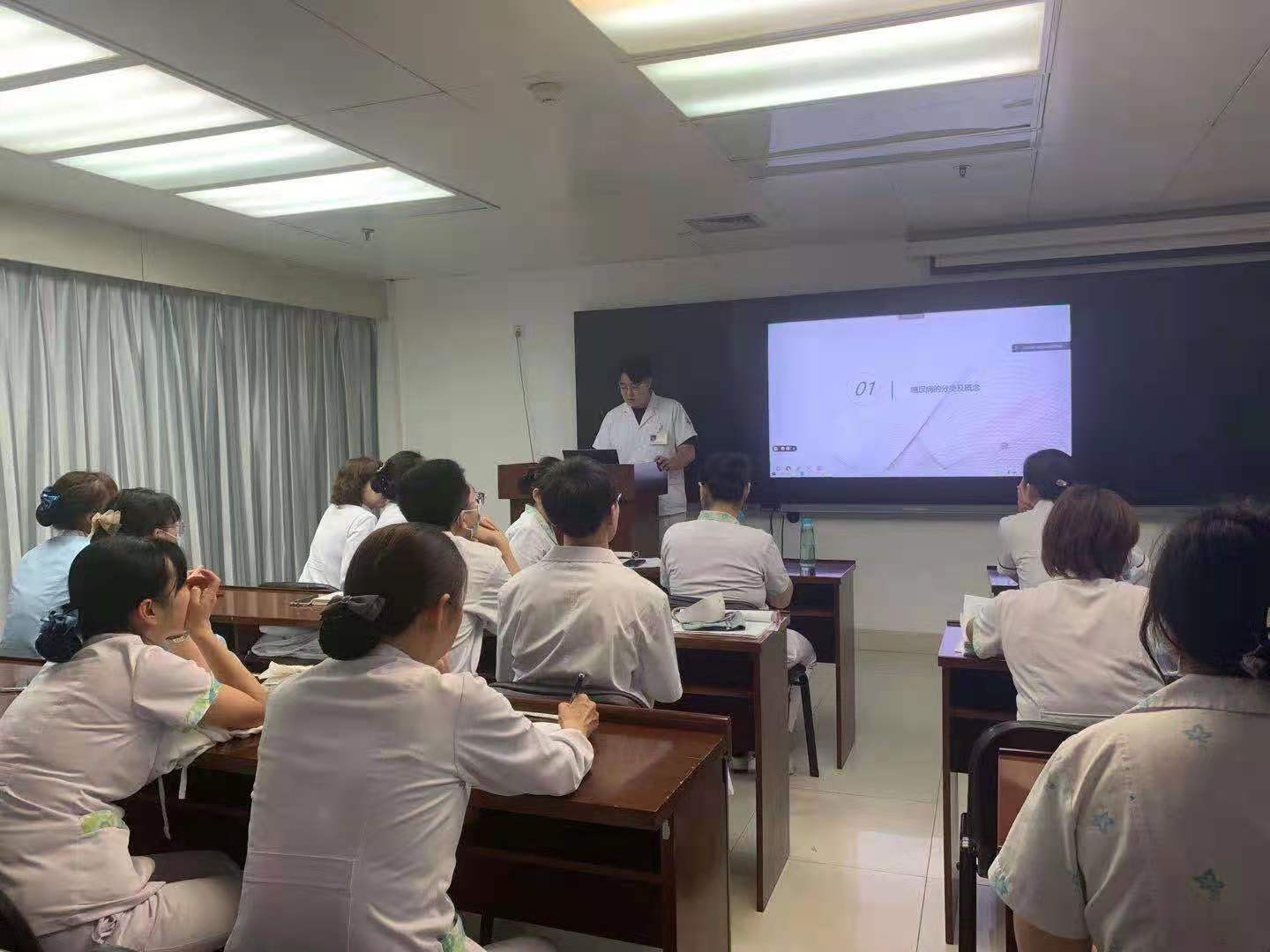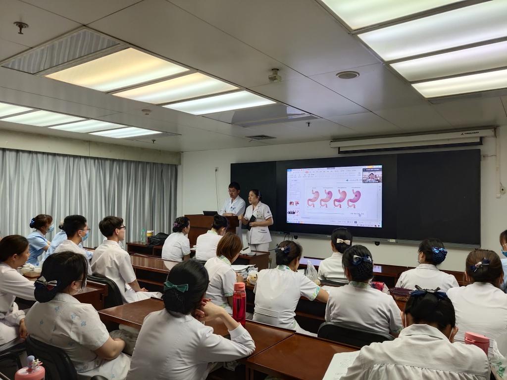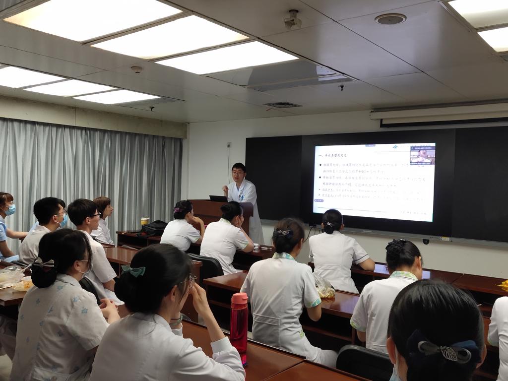 为了提高临床护理人员的专业技术水平,促进多学科的合作与交流,普通外科于7月19日午休时间进行了七月份的护理查房与业务学习,学习以线上线下同时进行,普通外科全体护理工作人员、实习生及进修生参加了此次学习。