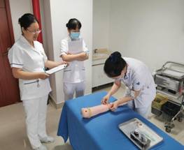 本次活动由继续教育组老师、外周静疗小组核心成员、各病区静疗联络员参加。科室静疗联络员作为专业组与一线护士连接的纽带,其操作的规范性折射出前期地毯式培训的效果和临床潜在的问题,为我们改进与提升找准方向。活动共分为两部分,第一部分为全院静疗联络员根据前期安排分为三组,进行线上考核答题;之后第二部分进行了贴膜固定的操作考核,要求大家准确识别并在规定时间内进行完成。大家沉着应对,每一步都有条不紊,按规范流程更换、固定贴膜。评委们全神贯注的注视着操作者每一个动作,操作结束后对每个人现场进行个体化指导,及时为大家提供技巧,纠正错误。两个小时的考核结束后,评委们对考核存在的共性问题进行反馈与探讨。