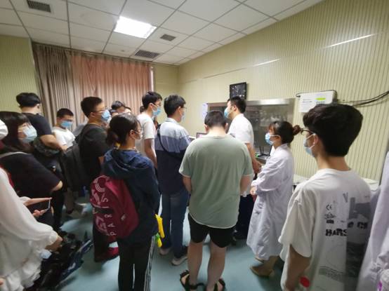 2021年7月18日上午,西安交通大学生命科学院周秦武教授及刘颖老师带领60余名大二本科生前来西安交通大学第一附属医院医学影像科进行影像见习,科室主任杨健教授进行了开场科室介绍及见习指导,刘哲医生、李军军、樊钢练、宋哲凡、郝辉、曹乐、王歌亮技师等老师带领同学参观了科室并进行了影像设配、技术方法等详细介绍,经过一早上的带教,“医工交叉联合培养”见习圆满结束。