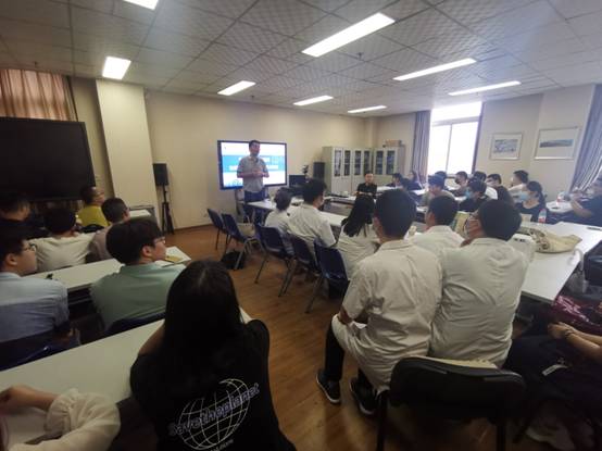 杨健主任随后进行了科室介绍,从人员配备、设备分布、技术应用等方面进行了逐一介绍,其次重点普教了人工智能在医学影像学中的应用,进一步激发生命科学院工科背景学生对医学影像人工智能应用的兴趣,同时也重点向同学们阐明了国家“十四五”规划及我校“卡脖子”、“临门一脚”等重点问题,切实从医工交叉的角度为生命科学院的见习同学进行了全面的讲解。