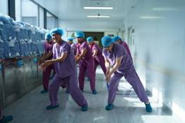 技能竞赛结束后,紧接着迎来了我们介入手术室的手卫生知识竞赛,首先由科室90后的9个帅小伙组成了舞蹈团,他们精心编排了七步洗手舞为大家进行表演,充满活力的表演,让大家看到了介入科朝气蓬勃的模样。