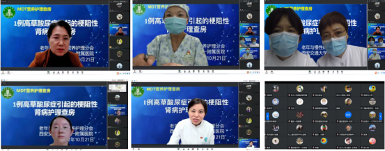 遵照陕西省营养学会老年与慢性病护理分会的安排,由交大一附院杨亚丽副主委组织的《1例高草酸尿症引起的梗阻性肾病》MDT护理查房于10月21日下午16时在线上进行。