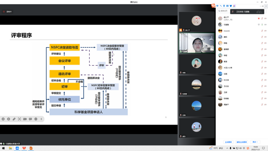 11月3日,为了更好的配合国家医学中心建设任务,促进科室科研特别是国金申报工作,肿瘤放疗科开启了2023年度国科金申报专题会议,会议邀请马瑾璐教授就目前国科金申报中的常见问题及基金委最新政策性调整给全体参会人员作了详细讲解。科技部李光月老师参会指导工作,会议由放疗科科研秘书曲以平主持,科室中青年医师、物理师等20余人参会,刘锐副主任、李毅副主任、赵东利教授、任娟教授参会并就热点问题做了讨论。