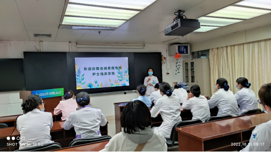 10月31日,52位进行实践观摩学习的学员正式进入肝胆外科,首先杨勤玲总护士长对肝胆外科的基本情况以及糖尿病专业组目前开展的工作为大家做了详细介绍,希望大家在接下来的临床实践中能够将理论与实际相结合,不断创新,努力将糖尿病专业化不断向前推进。冯爱芳副护士长鼓励大家遇到问题积极提出,可以一起头脑风暴,互相积极交流,告诉大家沟通永远是打开自己思维的最好方式。