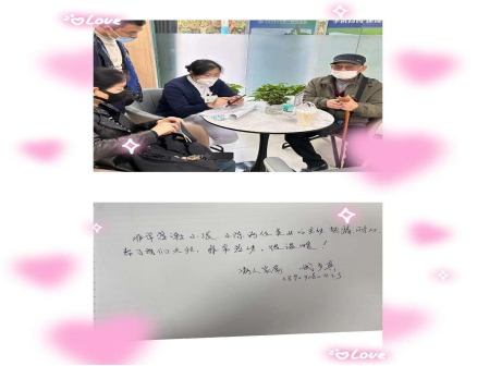 爷爷告诉护士,他专门是从东郊乘坐地铁来到交大一附院看病的,出了地铁站就看到了“健康驿站”几个字,再一看,这不就是咱们交大一附院的“健康驿站”么。交谈中得知爷爷因为自己年龄大再加上疫情的影响,迟迟不能来医院就诊,今天终于可以出门了.“就想来咱们泌尿外科看病,正想着自己不会挂号,也不知道该去哪咨询的时候就走进了咱们健康驿站”。护士们热情的接待了爷爷并帮助他用“智慧好医院”手机程序预约挂号,同时给爷爷激活了电子医保卡并教会爷爷如何使用,最后在护士们的陪同下坐上了医院免费接送患者的“直通车”。在上车之前,爷爷握着护士的手不断说着“谢谢,谢谢你们!”并且亲笔写下了一封“感谢便签”来表达自己激动和感激的心情。