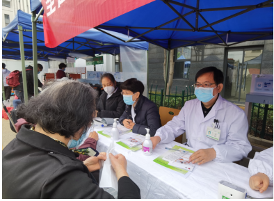 活动中,心内科医护人员在帮助患者测量血压的同时,用浅显易懂的语言融入与患者的交流和沟通当中,帮助广大市民更为科学的认识和管理血压,让广大市民知道“知晓你的血压,降压要达标”。