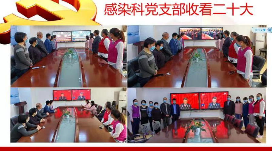 感染科党支部在何英利书记的组织协调下,全体党员采取线上线下相结合的模式收看了中国共产党第二十次全国代表大会开幕会。与大会同步,党支部全体党员起立唱国歌,向已故老一辈无产阶级革命家和革命先烈默哀,并严肃认真的听取了习近平总书记的重要报告。
