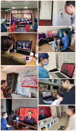 习近平总书记代表第十九届中央委员会向大会作了题为《高举中国特色社会主义伟大旗帜为全面建设社会主义现代化国家而团结奋斗》的报告。报告共有15个部分的内容:一、过去五年的工作和新时代十年的伟大变革;二、开辟马克思主义中国化时代化新境界;三、新时代新征程中国共产党的使命任务;四、加快构建新发展格局,着力推动高质量发展;五、实施科教兴国战略,强化现代化建设人才支撑;六、发展全过程人民民主,保障人民当家作主;七、坚持全面依法治国,推进法治中国建设;八、推进文化自信自强,铸就社会主义文化新辉煌;九、增进民生福祉,提高人民生活品质;十、推动绿色发展,促进人与自然和谐共生;十一、推进国家安全体系和能力现代化,坚决维护国家安全和社会稳定;十二、实现建军一百年奋斗目标,开创国防和军队现代化新局面;十三、坚持和完善“一国两制”,推进祖国统一;十四、促进世界和平与发展,推动构建人类命运共同体;十五、坚定不移全面从严治党,深入推进新时代党的建设新的伟大工程。习近平总书记报告的过程中,全场一次次响起热烈的掌声,麻醉手术部的党员同志们听的专注、感动、热血沸腾。